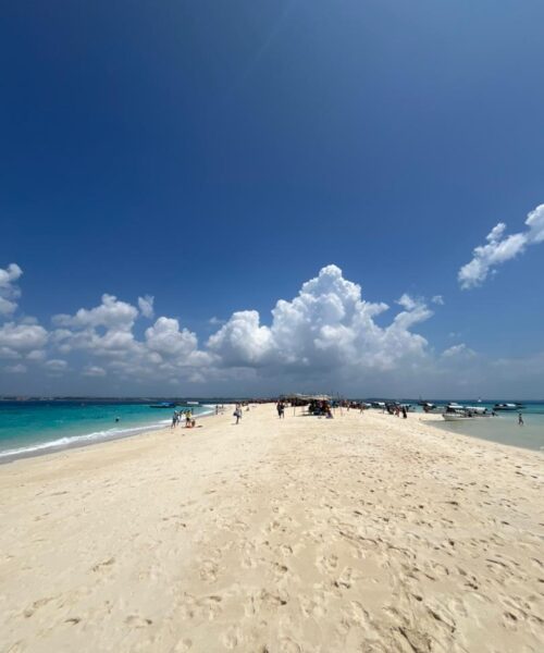 -is a breathtaking white-sand paradise just off Stone Town, appearing with the low tide. Surrounded by crystal-clear turquoise waters, it’s perfect for swimming, sunbathing, snorkeling, and enjoying fresh tropical fruits